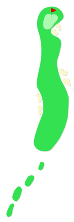 Here is a chance to make up some ground if you find yourself trailing to this point. This beautifully sculpted par-4 is only 312 yards long from the tips, plays downhill and presents an eagle opportunity. Aim at the left greenside bunker and blast a power fade if you are planning to have an eagle putt. If not, you may choose to place a wood shot in the opening between the bunkers to the right and the large maple trees on the left, or lay up to the widest part of the fairway, short of the bunkers with a mid to long iron. If the wind is hurting going for the green off the tee is risky and any misses in the ash trees hamlet to the right will yield a bogey or worse. Be careful not to spin your approach shot off the sloped green and try to leave the ball below the pin for a good look at a birdie. It could prove to be a very memorable hole, if you challenge it!